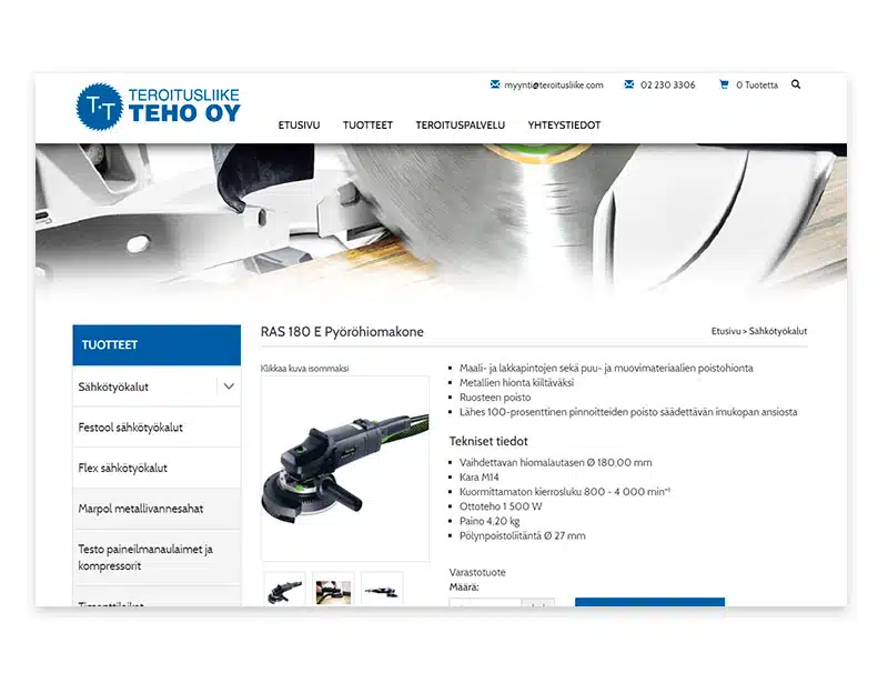 Teroitusliike Teho on perustettu vuonna 1946, eli yritys on teroittanut teriä teollisuuteen sekä yksityisille kuluttajille jo yli 70 vuotta. Teroitusliike Teholta löytyy vankkaa kokemusta ja ammattitaitoa lähes kaikkien terien teroittamisesta. Verkkokaupasta, ja kivijalkamyymälästä, löydät myös erilaiset terät ja sähkötyökalut niin puun, muovin kuin metallinkin työstöön.